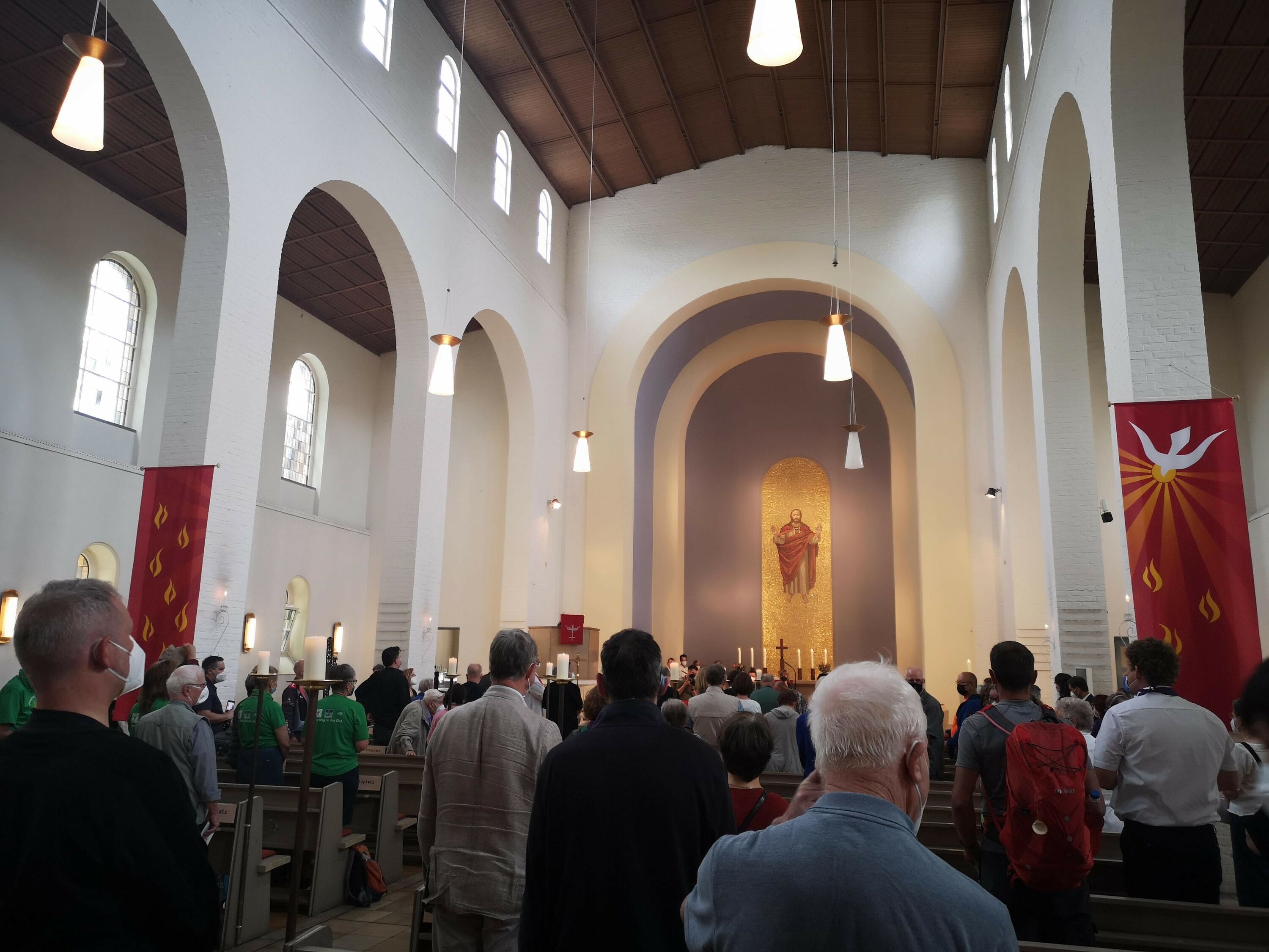 "Zwei Schritt vor, einer zurück". So waren die ersten Worte von Dr. Stäblein, Bischof der Evangelischen Kirche Berlin-Brandenburg-schlesische Oberlausitz (EKBO) in seiner Predigt. Eine Predigt, die so nah am Pilgerleben war, dass man in Gedanken mitlief. Und so richtig Rund machte das Bild, der vorangegangene Einmarsch der vielen, vielen Pilger in ihren Pilgeroutfits. Ein Gefühl wie in Santiago.