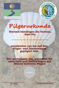 Am Samstag, 10. Juli haben Marianne Eulitz und Christopher Frantzen aus unserem Vereinsvorstand zusammen mit Vertretern unserer Leipziger Schwestergesellschaft Verein Jakobsweg Via Imperii e.V. in der Fahrradkirche Zöbigker in Markkleeberg im Beisein von ca. 20 Pilgernden und Gästen unsere gemeinsame neue regionale Pilgerurkunde (sie erhält, wer 150 km am Stück in unserer Region gepilgert ist) vorgestellt.