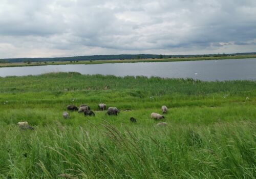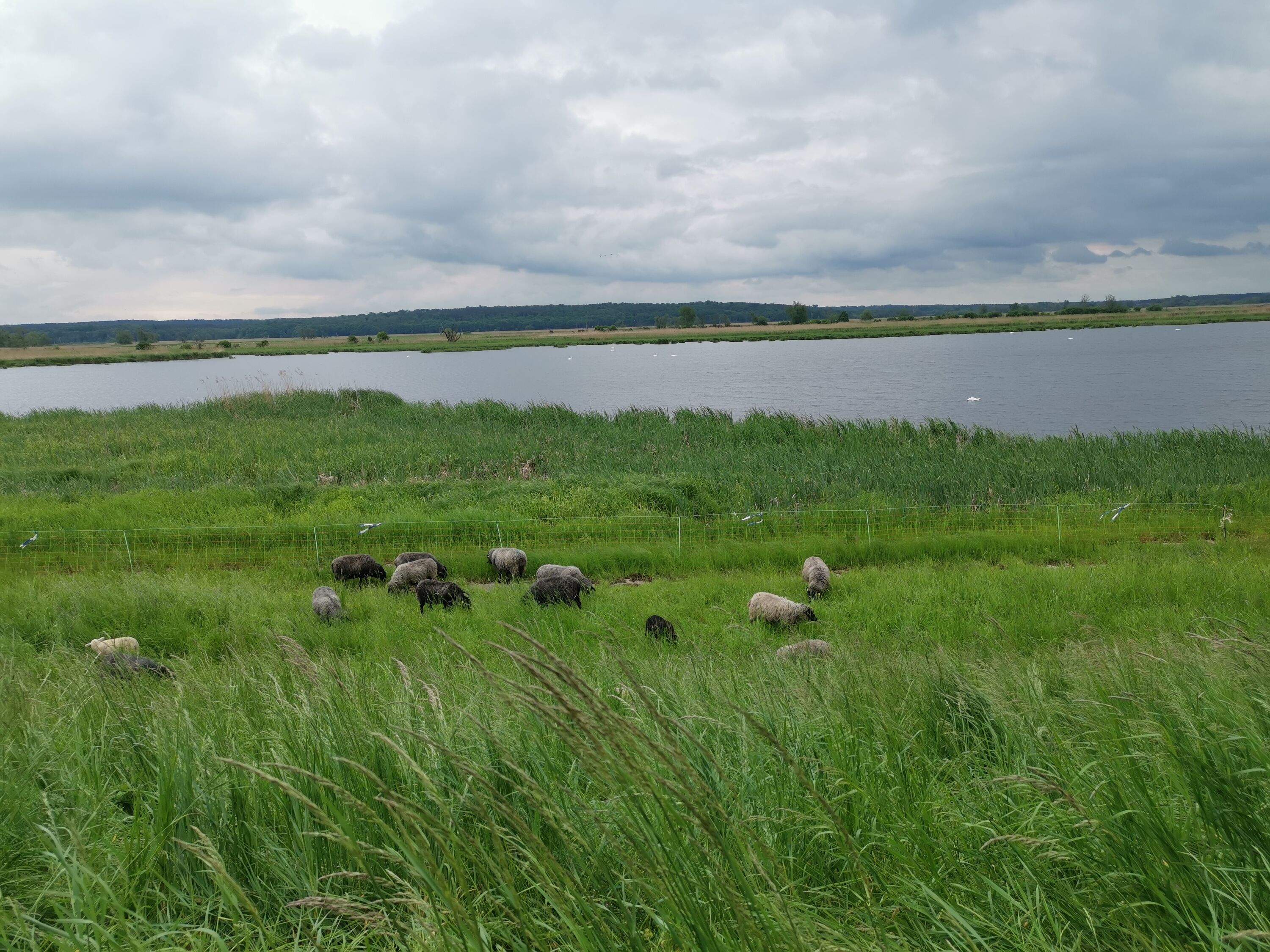 Mein zweiter Tag startete mit einem Frühstück bei meinen Großeltern, wonach ich gegen 8 Uhr startete. Heute ging es weiter auf dem Deich über Zützen, Criewen, Stützkow, Stolpe nach Stolzenhagen, wo ich auf einem Eselhof übernachtete. Meine Großeltern besuchten mich tagsüber ein paar Mal auf dem Fahrrad und sie begleiteten mich ein Stückchen. Kurz vor Stützkow hielt jemand von der Naturwacht hinter mir an und fragte mich, ob er mich ein Stückchen mitnehmen solle. Ich verneinte, da ich ja zu Fuß unterwegs sein wollte. Eine lustige Begegnung war es dennoch!?