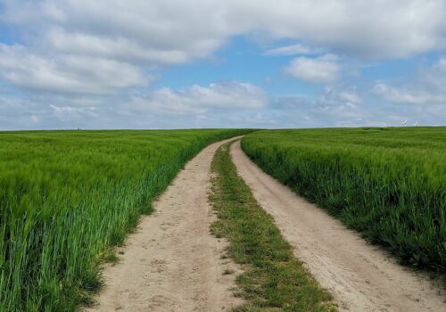 Ich pilgerte somit durch die Uckermark und den Barnim bis nach Berlin in sechs Tagen. Mir gefiel der Weg sehr gut und das liegt nicht nur daran, dass ich eine geborene Uckermärkerin bin und meine Heimat liebe. Ich habe mich sehr gefreut, dass ich den frischen Beschilderungen folgen durfte, die erst im Frühjahr 2021, also kurz vor meiner Tour, fertig gestellt wurden. Ich habe mich sehr gut zurecht gefunden auf der Via Imperii, inmitten der leicht hügeligen Uckermark mit den weiten Feldern und noch weiteren Blicken. Die Unterkünfte plante ich mir immer Tag für Tag – in Schwedt/Oder schlief ich bei meinen Großeltern, die mit mir mit fieberten. In Stolzenhagen ergatterte ich auf dem Eselhof eine Unterkunft in der Knechtstube, in Groß Ziethen schlief ich im Ziethener Gemeindehaus bei der netten Pfarrerin, in Eberswalde nahm mich eine sehr liebenswerte Familie für eine Nacht auf, in Lobetal gewährte mir eine Familie mit zwei großen Hunden eine tolle Pilgerunterkunft und schließlich durfte ich in Berlin bei einer Freundin ein Dach über dem Kopf genießen. Zusammenfassend kann ich sagen, dass der Weg wirklich gut beschildert ist und ich ihn jedem ans Herz legen kann, der in einer besinnlichen Ruhe durch die Natur pilgern will fernab jeglichen Trubels – denn den sucht man in der Uckermark vergebens."